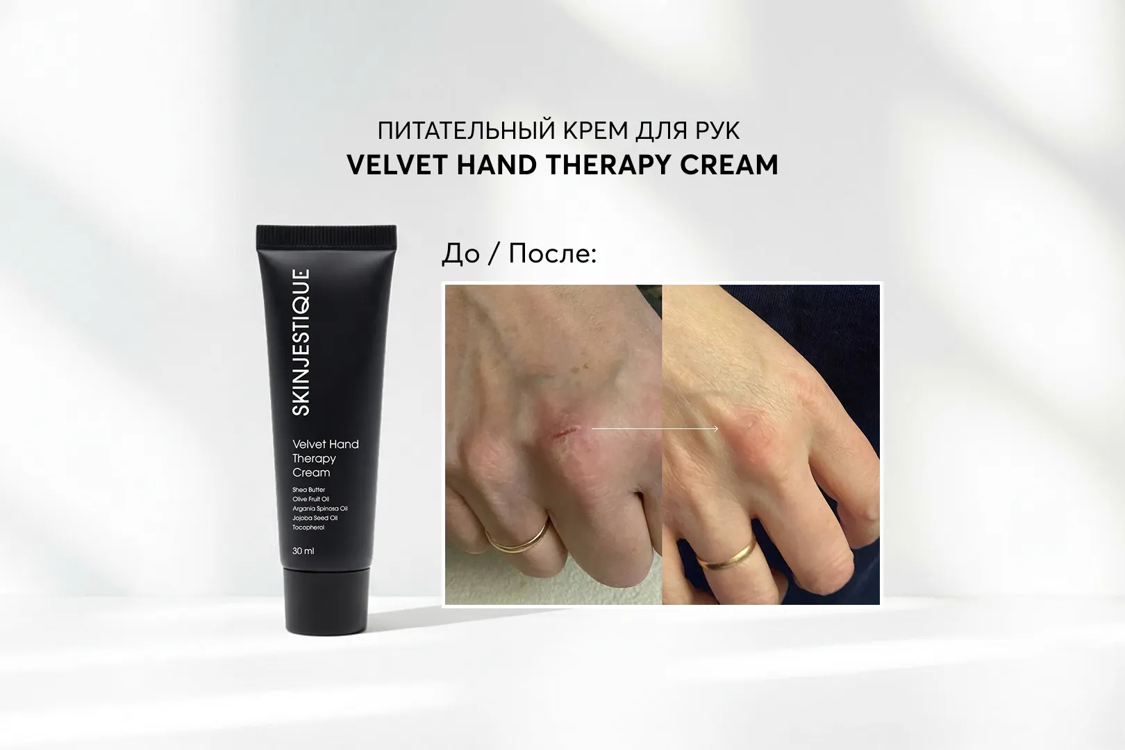 И да, мы расщедрились на новинки и кладем в подарок наш новый крем для рук Velvet Hand Therapy Cream, который буквально реанимирует руки из любого состояния — посмотрите на это до/после.